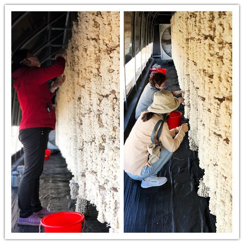 烟台栖霞市亭口镇衣家村山腰间的培育大棚里,一排排一行行玉木耳形如盘状、晶莹剔透、如玉似脂。连日来,大棚里人头攒动,笑语盈盈,村民们满怀喜悦采摘玉木耳,好不热闹。分装车间里也是灯火通明,如火如荼,一派繁忙景象,村民熟练地打包、装箱,近50万斤玉木耳正通过线上电商、线下商超一箱箱送往全国各地。