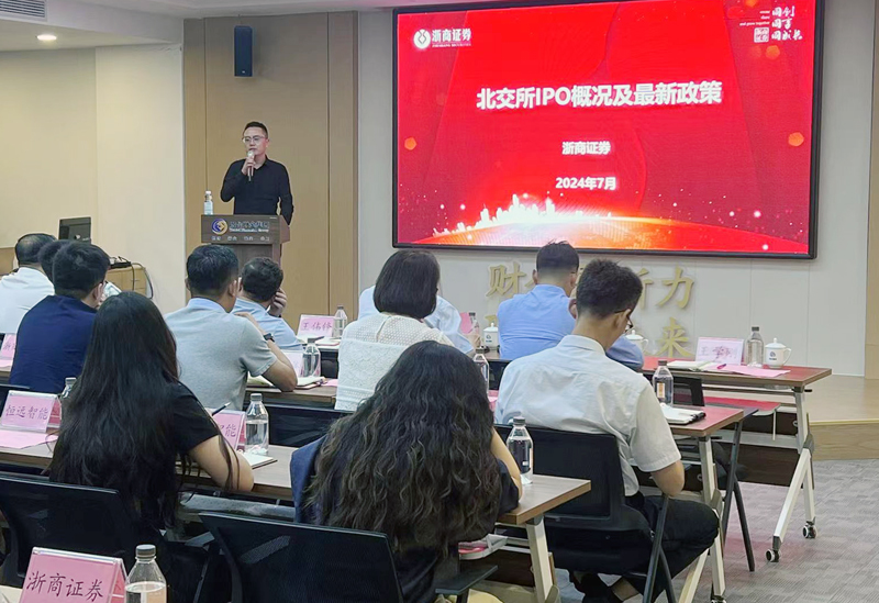 浙商证券烟台营业部总经理王鹏围绕北交所IPO最新政策及投融资概况展开交流分享。他通过成功上市案例的分析,讲解了上市规律、上市逻辑以及如何降低上市财务成本和时间成本、规避上市失败风险等方面内容。