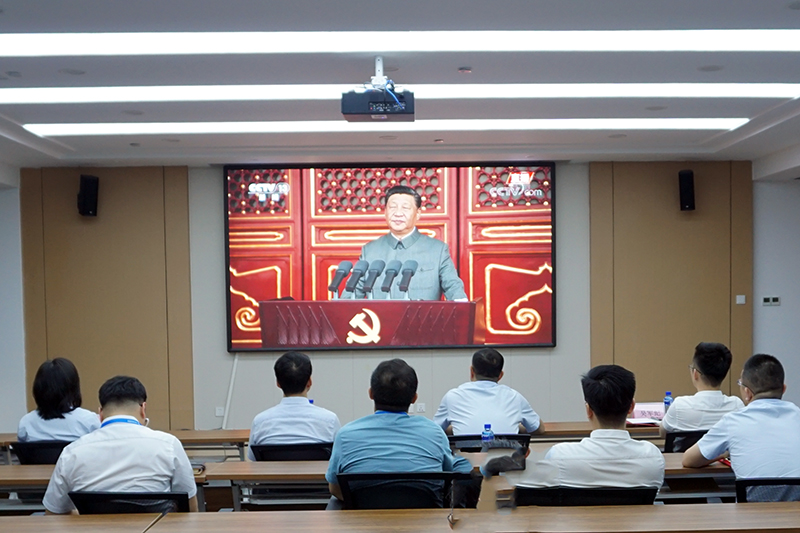 7月1日上午8时,庆祝中国共产党成立100周年大会在北京天安门广场隆重举行。中共中央总书记、国家主席、中央军委主席习近平发表重要讲话。谈球吧集团组织全体干部职工集中收看“七一”庆祝大会实况直播,共庆中国共产党百年华诞。
