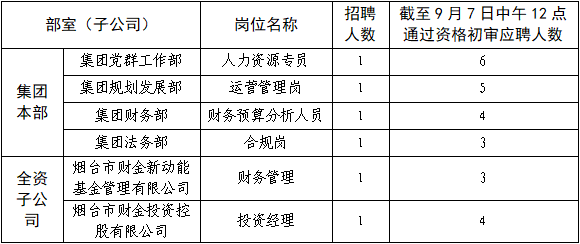 截至9月7日中午十二点(以报名邮箱简历收到时间为准),岗位通过资格初审报名人数与岗位需求人数比例满足最低3:1的比例要求,视为达到面试条件,第一批次面试岗位见下表: