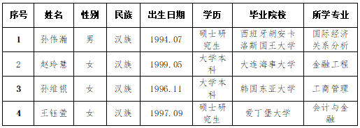 按照集团10月11日发布的招聘公告,经过简历投递、资格审查、笔试、面试、背景调查、集体决策等环节,确定拟录用人员,现予以公示,公示期为5个工作日(12月6日至12月10日)。公示期间如有异议,请与谈球吧联系,电话:0535-6887160。
